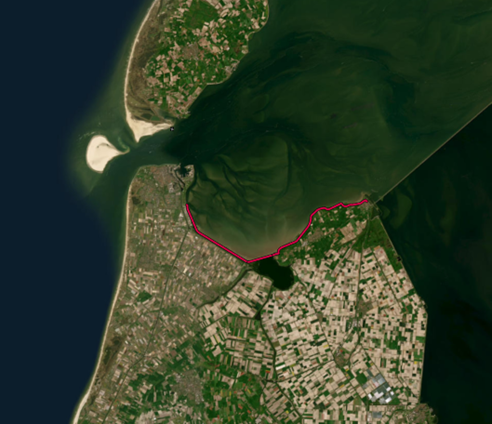 Het nemen van de luchtfoto’s vindt plaats op de primaire waterkering tussen Den Helder en Den Oever (zie de rode lijn in de figuur hieronder).