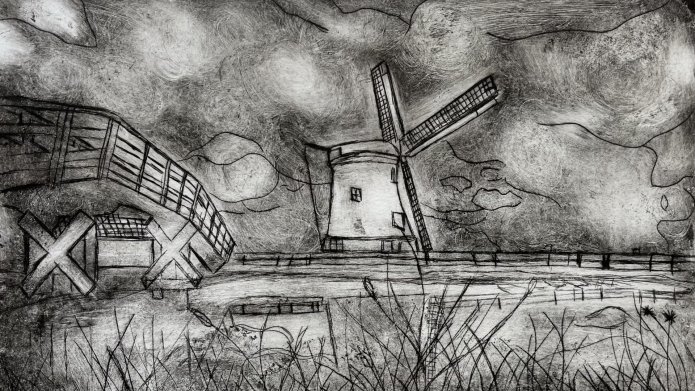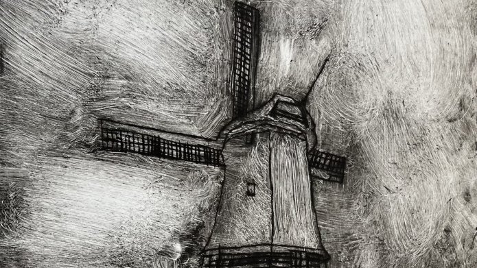 Op locatie onderzochten de leerlingen de lichtval in de polder. Hoe zit het met tegenlicht, reflectie en slagschaduw en hoe breng je die effecten in beeld? Voor deze opdracht gebruikten de leerlingen de etstechniek. Hierbij wordt de voorstelling in een plaat gekrast met een scherpe naald. Het is een laagdruktechniek waarbij de ingekraste lijnen de voorstelling weergeven. De plaat wordt ingewreven met inkt en vervolgens wordt het overtollige inkt weggewreven zodat alleen de diepliggende lijnen gevuld blijven met inkt. De etsen van Rembrandt dienden als lichtend voorbeeld! Hij heeft in zijn tijd ongeveer 300 etsen gemaakt en wordt meer dan eens gezien als de beste etser uit de 17de-eeuw.