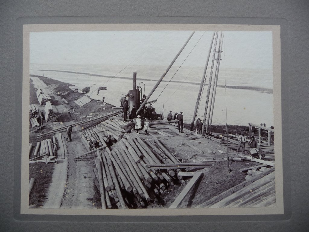 Toen het grondwerk voor de sluis in 1875 klaar was, nodigde de aannemer het polderbestuur uit voor een feestelijk moment. Het verhaal gaat dat het gezelschap met tentwagens naar de directiekeet in de Oost trok, een buurt vlakbij Oosterend op Texel. Ze dronken daar een glaasje en gingen toen met een stoombootje naar de bouwput van de sluis. De dijkgraaf Simon Keijser waadde vervolgens in hoge waterlaarzen door de modder. Hij beklom een groot blok hardsteen en sprak de aanwezigen toe. Hij greep de kans om mede te delen dat alles naar wens verliep, maar dat de kosten hoger uitvielen. Hierdoor moest het polderbestuur helaas de lasten met 5 gulden per hectare verhogen.